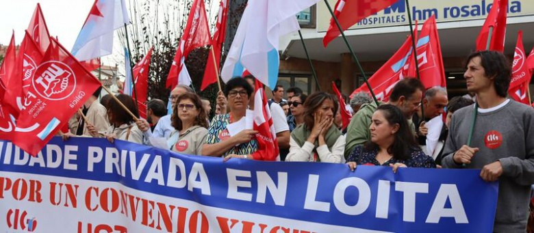 O persoal da sanidade privada continuará o próximo mércores, 8 de novembro, coas mobilizacións para exixir un convenio colectivo digno con salarios xustos. Desta volta, as organizacións sindicais CIG, CCOO e UGT teñen convocada unha manifestación que sariá ás 11:00 horas do Hospital San Rafael da Coruña. Aínda que nun primeira momento a mobilización estaba prevista para o xoves 2, ante a alerta meteorolóxica, as centrais acordaron mudar a data.