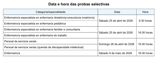 As aspirantes que precisen realizar a lactación materna durante os tempos dos exames deberán solicitar a súa realización: